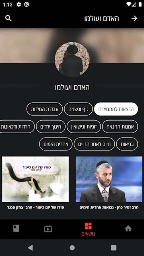 Hundreds of video lessons, in dozens of topics - faith, Torah studying, Mishnah and Talmud, Beginner lectures, Jewish World, the Question of the Universe Wonders of Creation, People of Israel, Torah and Science , Kabbalah, Holidays, Eretz Yisrael and Jerusalem, Biblical Archeology, Jewish Perspective, Torah Portion, Halacha Shiurim, Halachot Shabbos , Torah from heaven, Jewish Music.