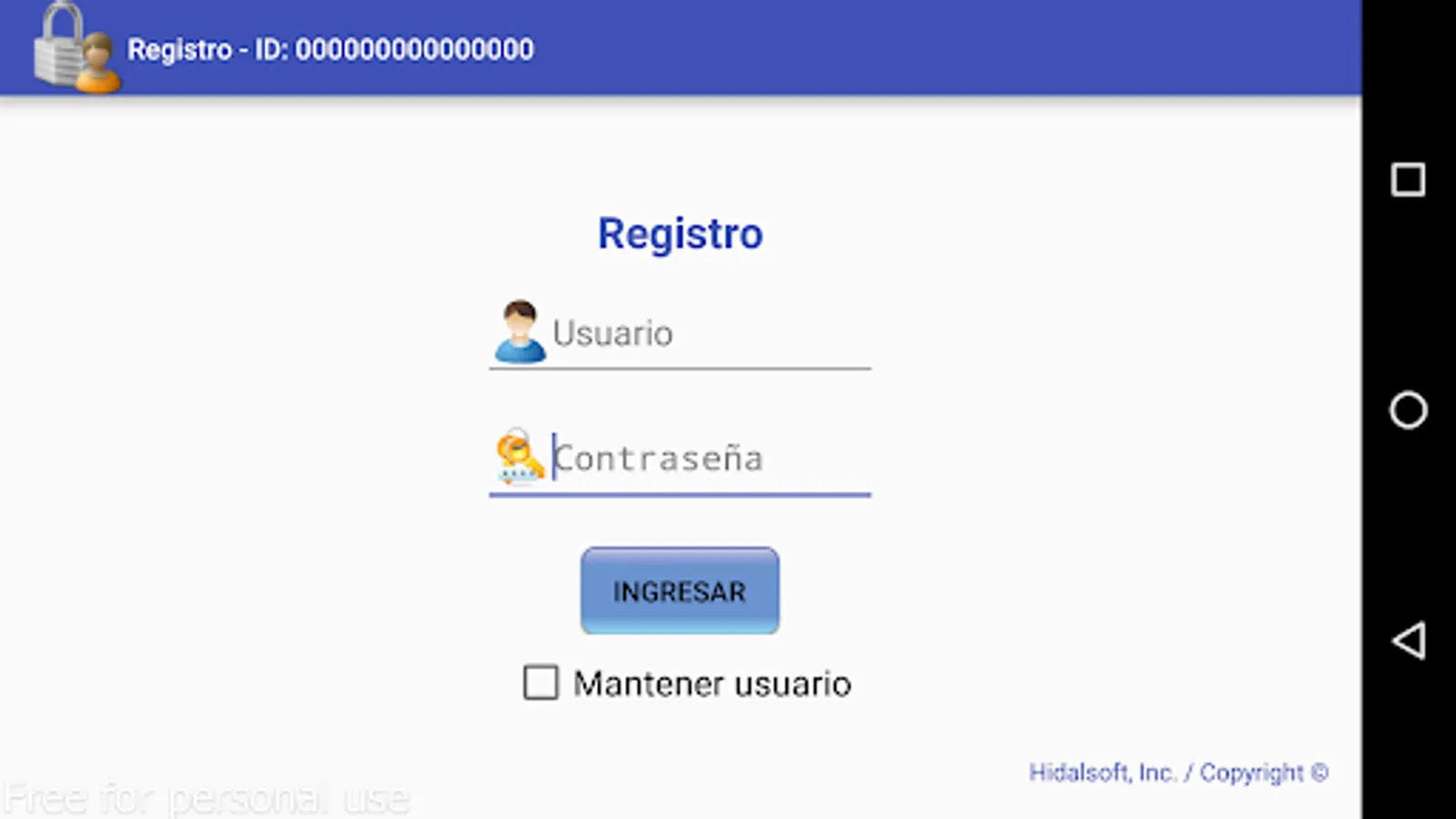 To enter the application and verify its functions, enter the following data.