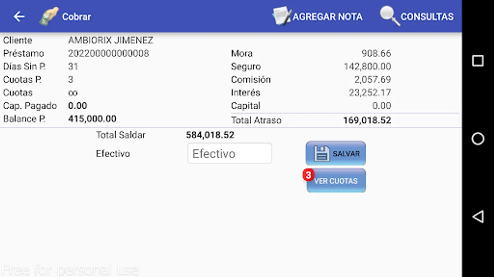 This application is an extension of our administrative software (Business Master) for use tools such as: loan collections, loan applications and among other options.