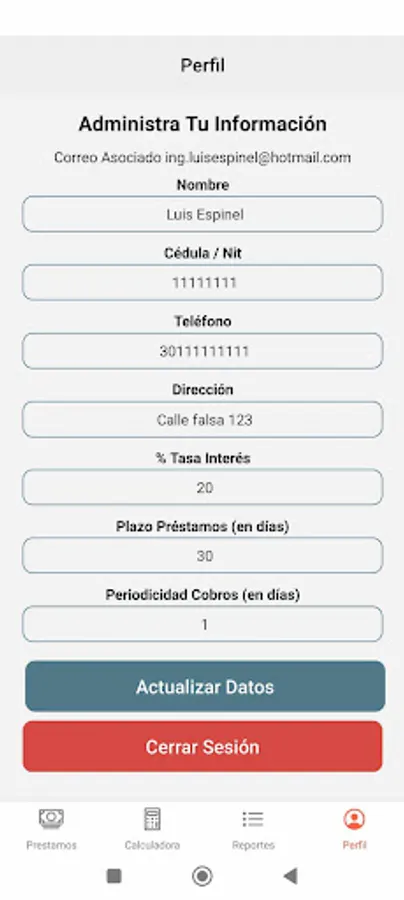ProCobros aims to facilitate the registration and administration of debts, allowing quick calculation for loan simulation, loan registration and payment registration. It also allows the generation of reports and their sending via email.