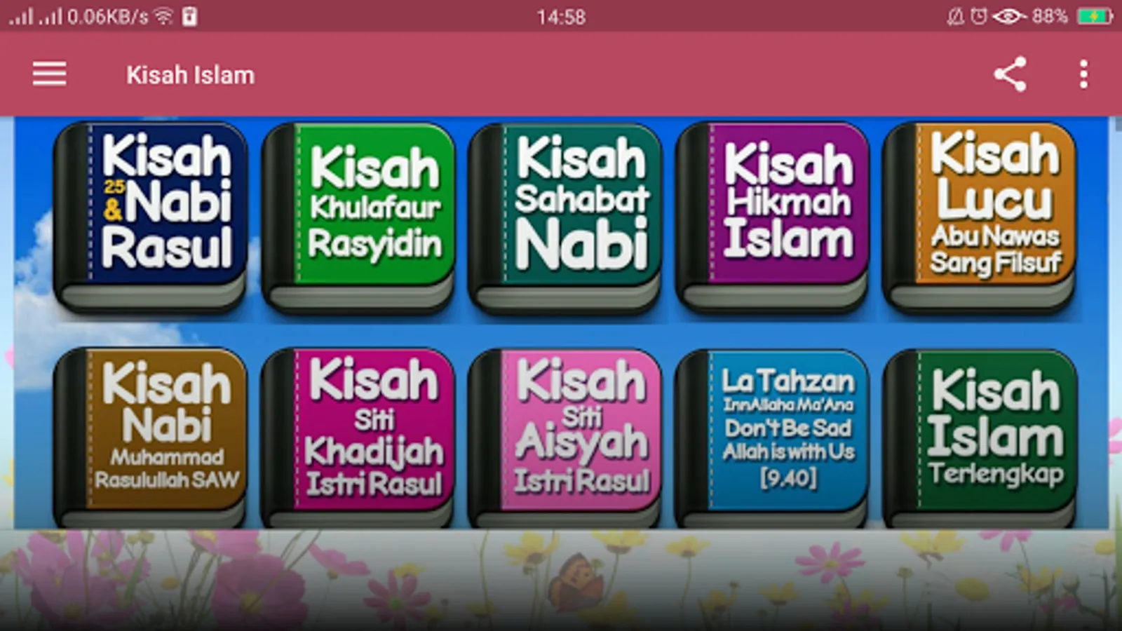adapun cerita atau kisah dalam aplikasi ini antara lain: