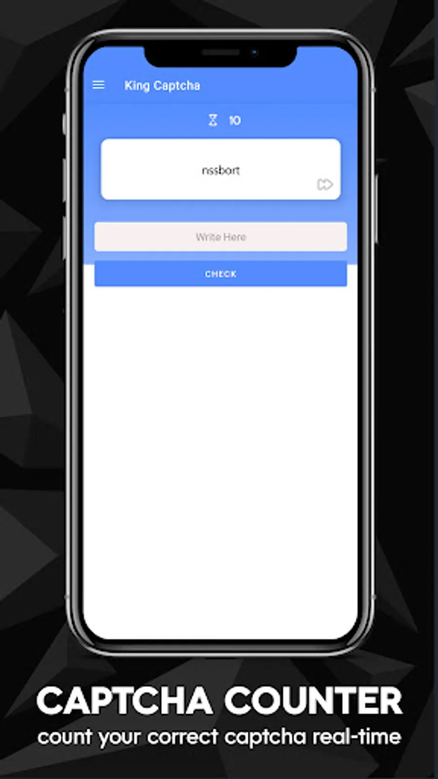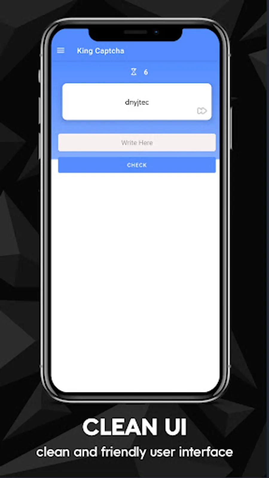 King Captcha is a captcha typing and solving application with easy levels that can be completed in a few seconds. By doing this captcha as entertainment and get inner pleasure. Start learning to type and gain abilities you could not imagine.