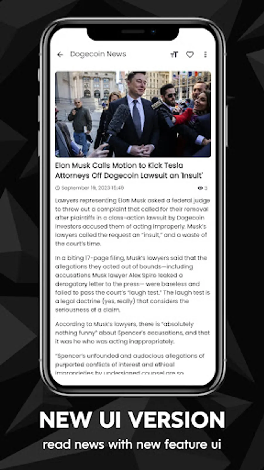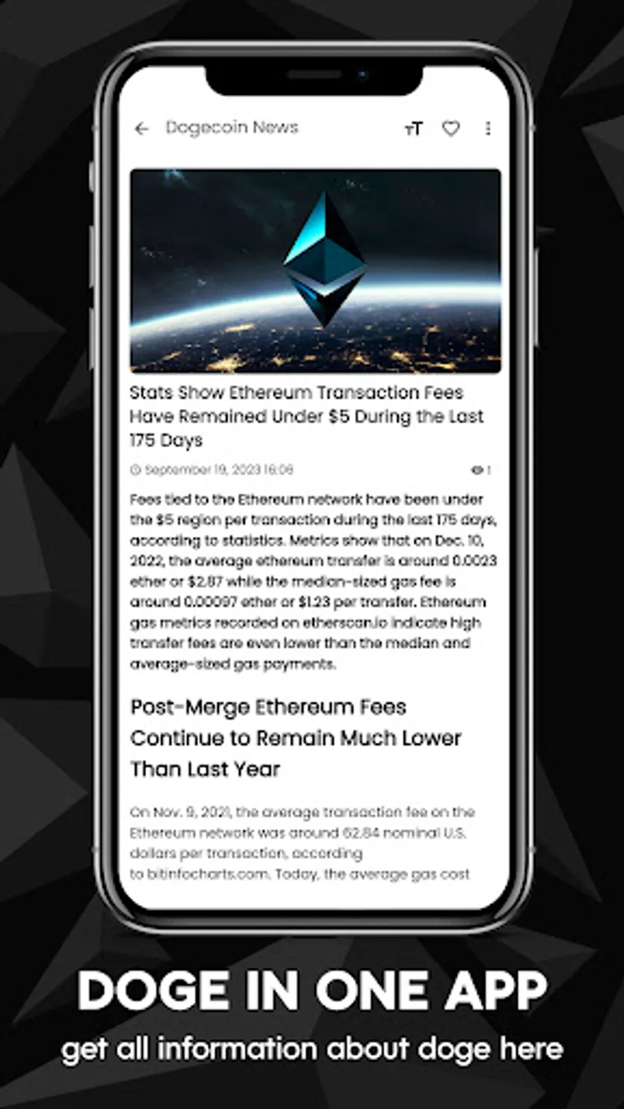 With Version 5.0.0 Improve from old app, we already improve and upgrade the user interface, menu, dashboard and many more. Clean application design and calm colors will make you enjoy reading our articles. You can adjust the text size, switch to dark mode easily and set notifications to get updated information quickly. 24/7 News about dogecoin everyday with high quality content.
