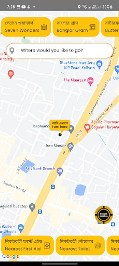 3. The "I am here" pin will be in Bengali and English both, to show the current location of the visitor.