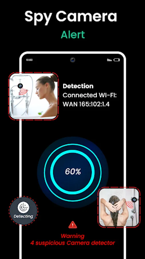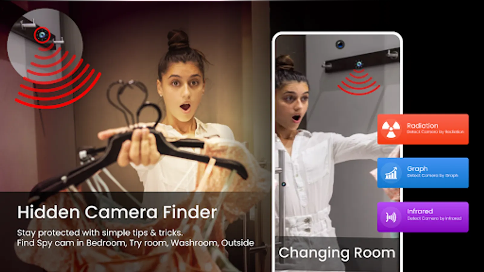 Hidden Camera Detector can easily replace a serious gadget for you to protect your privacy and find hidden devices. Hidden Device Camera Detector works as a detecting and detective cameras and metal cameras devices and working best detecting ferromagnetic materials such as hidden cameras, speakers and other so many spy devices. This spy camera finder is a spy device finder app that will help you spot any infrared device in any room or space. Find any hidden microphone, spy devices, quadrooter, IR Cam, wiretap or gps tracking device. Hidden camera finder can locate airbnb cams or any type of spy devices.