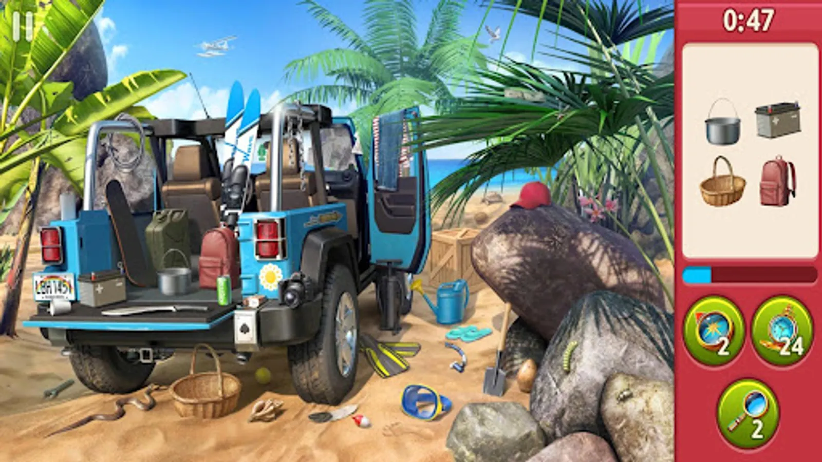 Embark on the Hidden Journey 2: Adventure Escape quest! Travel through the hidden object seek and find map and enjoy different locations – house on a beach, scientist laboratory, abandoned pickup truck, and many others. Enjoy the atmosphere thanks to the highly detailed awesome graphics!