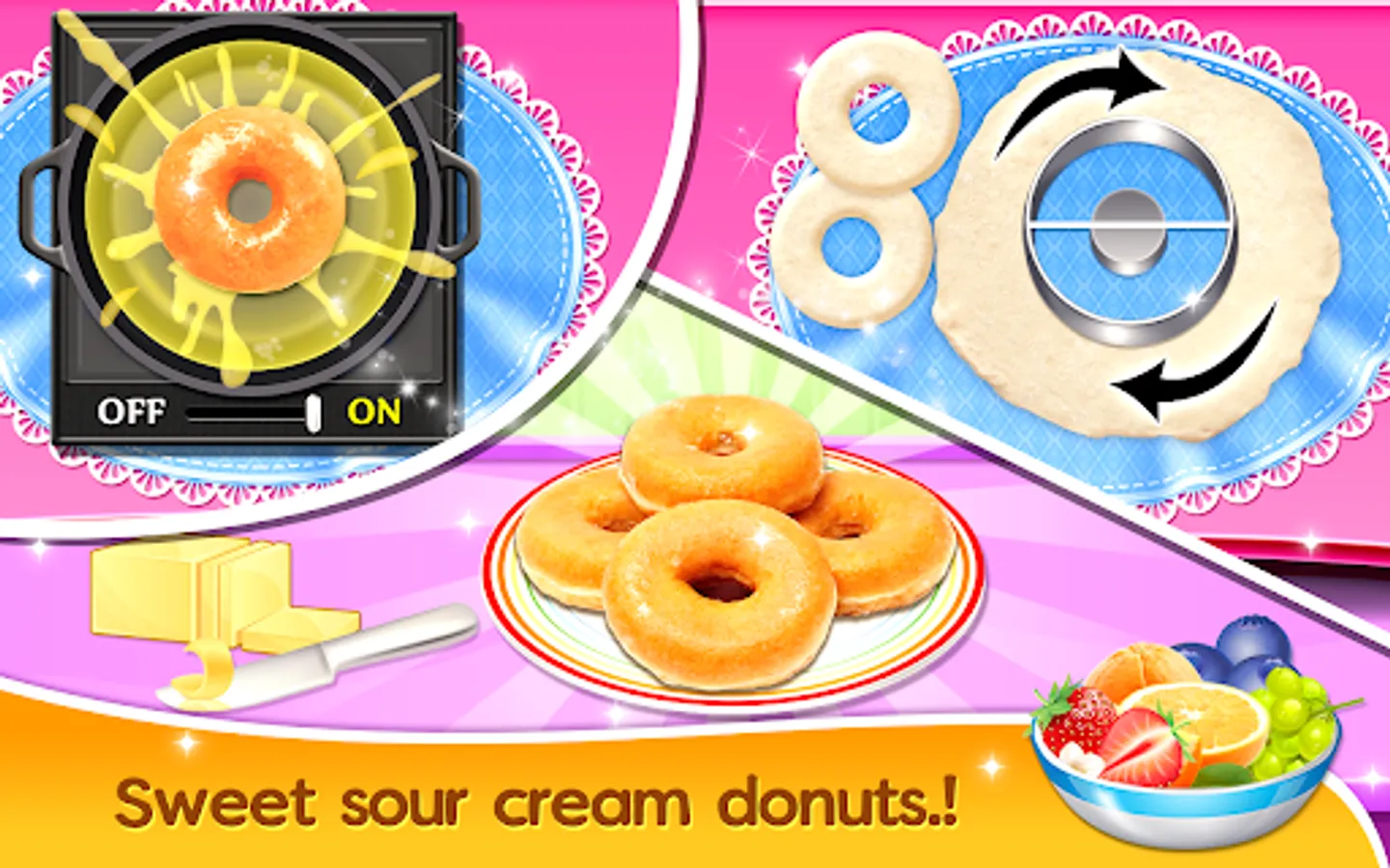 Let's have some cooking in home kitchen! In Breakfast Maker 2 you'll learn how to make Chocolate zucchini bread, Cinnamon Rolls, Pancake, Mini Muffins, Pita Pizza, Potato & Onion Frittata, Sour cream donuts! Which food do you want to try first? Come on! Let's get started right now! Start by collecting the required ingredients, follow cooking instructions and at the end decorate your breakfast with fresh fruits and vegetables! Share your creativity with your friends and family by sharing ready to eat breakfast food picture!