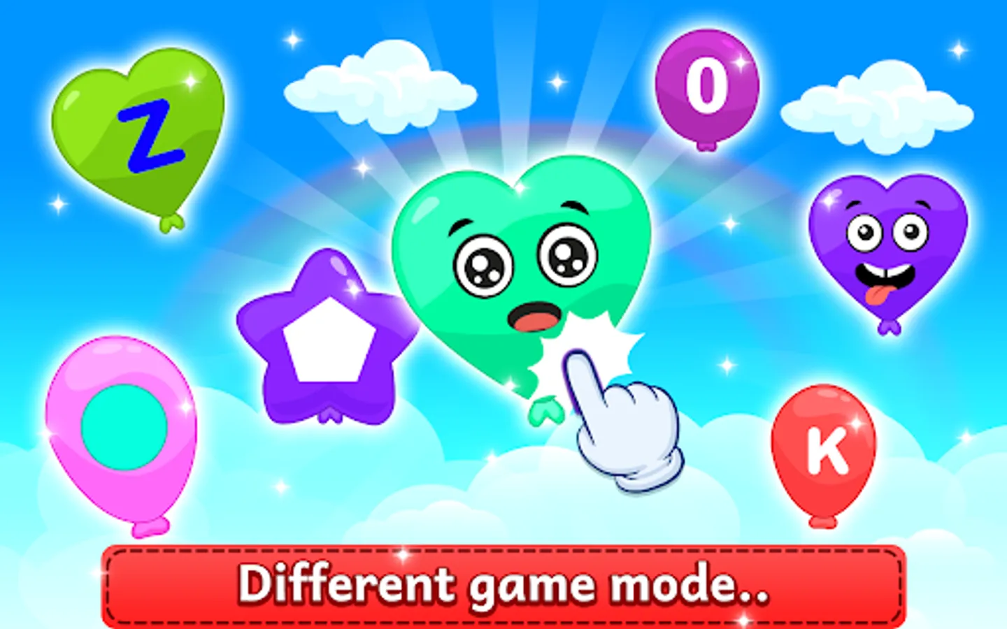 Free classic kids balloon pop game with colorful graphics and different backgrounds! Lets your kids learn new alphabets, number and shapes with colors in this free kids learning game. Popping balloons is more fun for kids and they also learn numbers, letters, shapes and colors while enjoying pop the balloon! It helps to improve your Childs skill level!