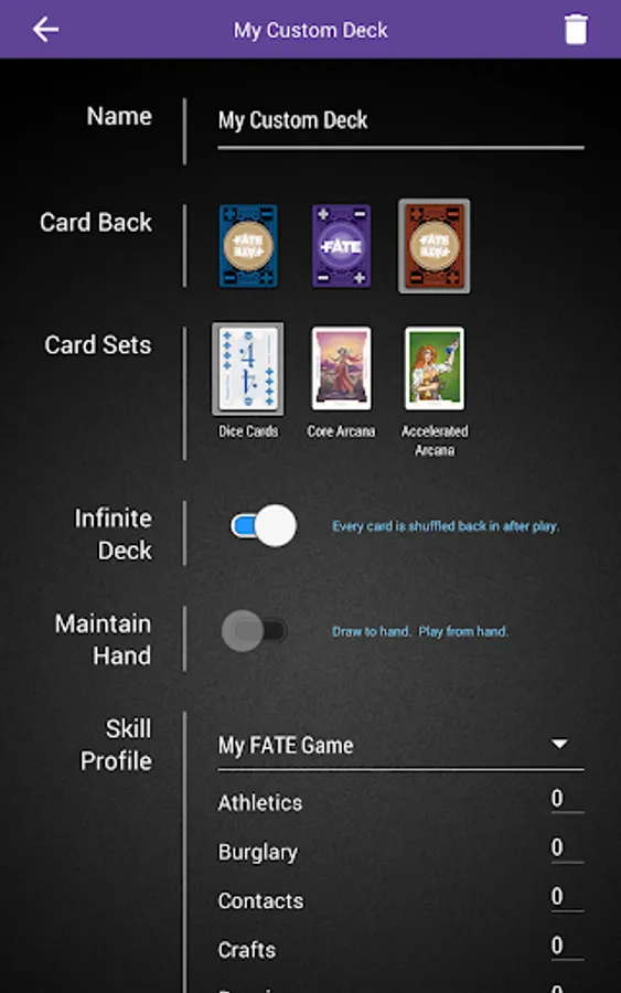 • Use the “Maintain Hand” option to keep a hand of cards, rather than playing straight off the deck.