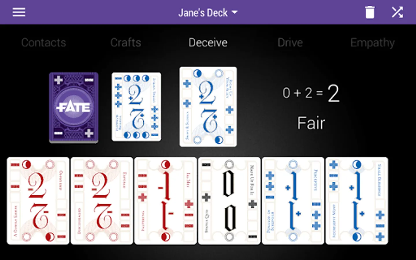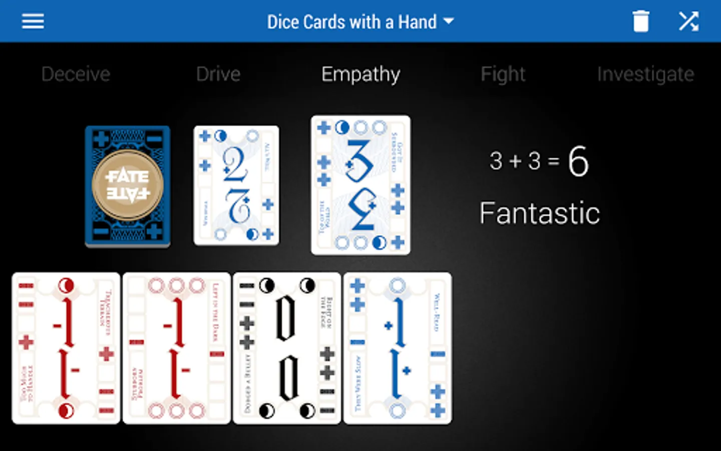 The Deck of Fate Mobile Edition brings the elegance and functionality of Evil Hat's Deck of Fate to your phone or tablet. The cards are always with you, right at your fingertips. No matter where you go, you can be Legendary!