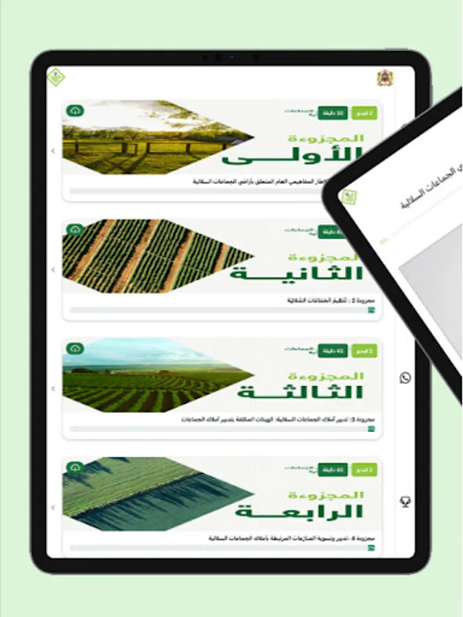 The training content provided in the application was developed under the Directorate of Rural Affairs of the Ministry of Interior of the Kingdom of Morocco whose website is http://www.terrescollectives.ma.