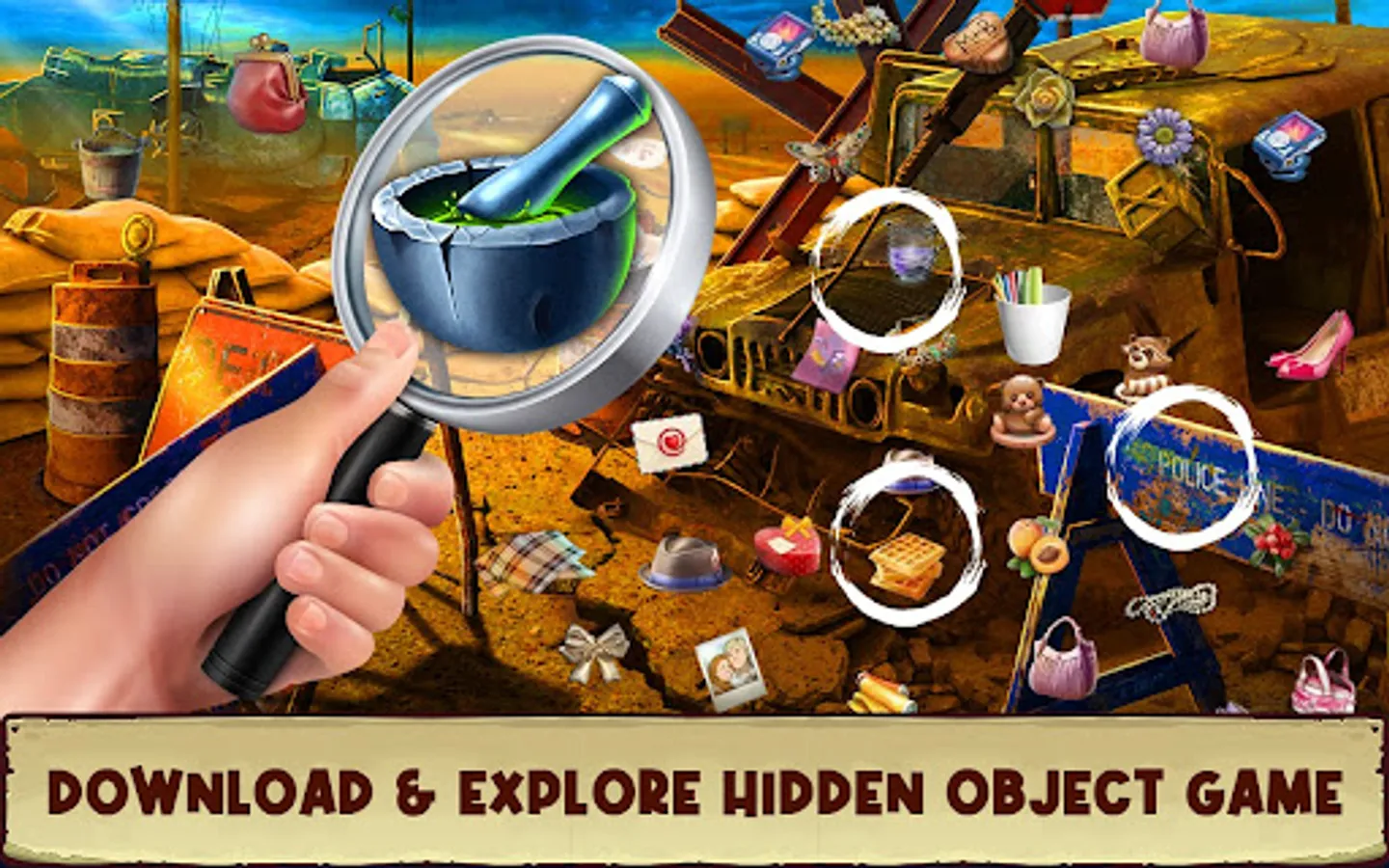 Find the listed object from the scene in this free hidden object game. This kind of hidden object games are very easy and entertaining to play with. For example, look at the scene, tap on the object and finish the scene you are investigating. Find the object and you will unlock the next level for more hidden object hunt fun.