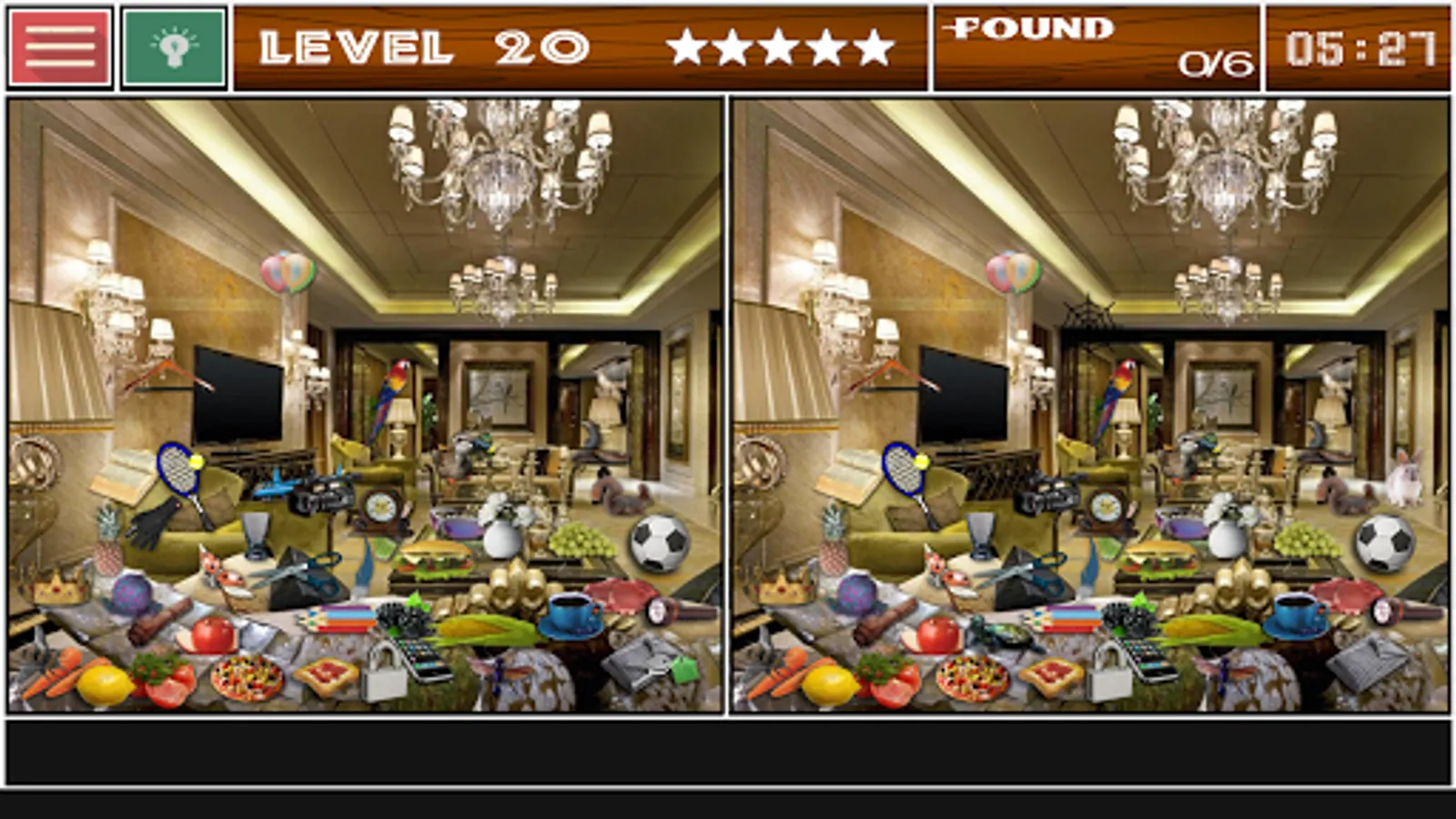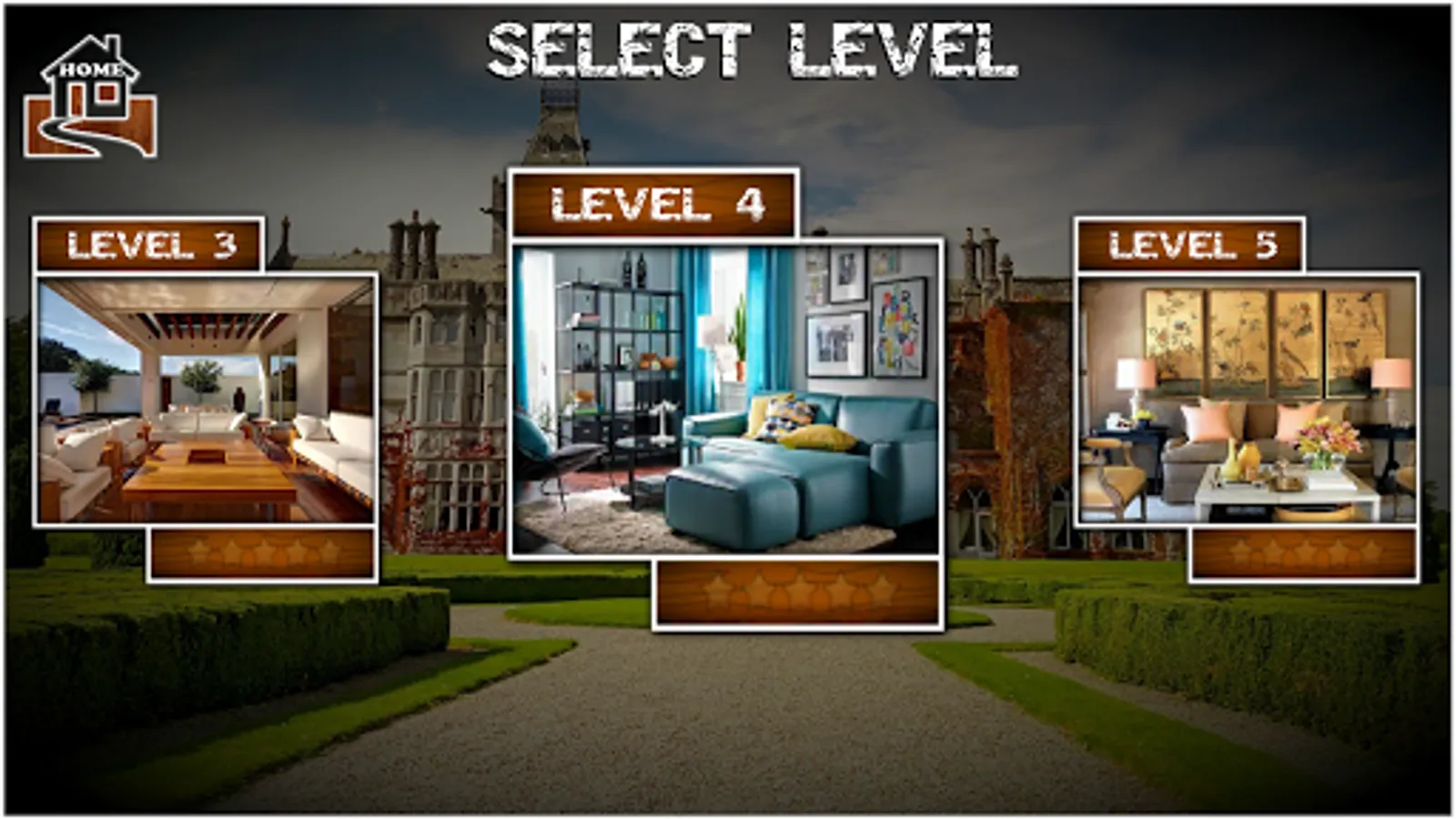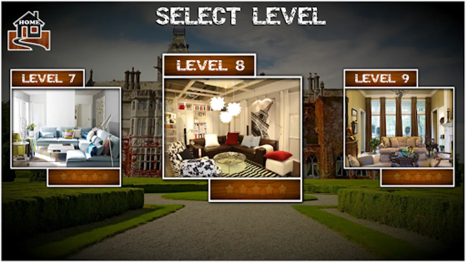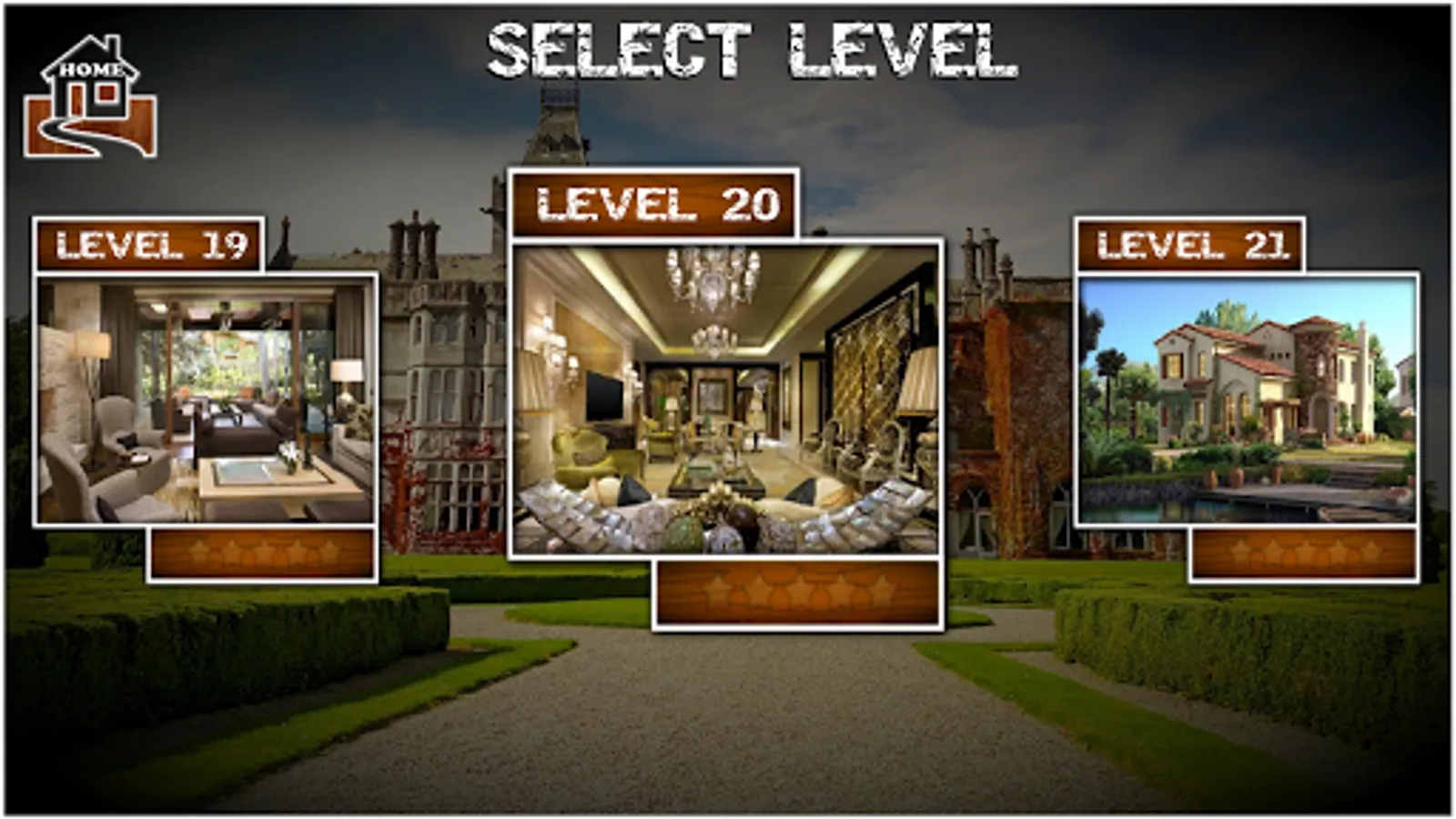 1: An express find different objects puzzle with 30 beautiful mansion pictures carefully crafted with love, amazing graphics and soothing sound effects