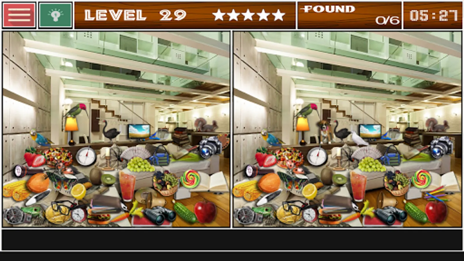 The beautiful and decorative game design provides hours of fun while you have to search for a variety of different hidden things like treasures, candy, fruits and vegetables, toys, coffee cups, cute little animals like dogs and cats, parrot and teddy bear etc. Search and find different objects secretly hidden in 2 pictures of mansion and explore the mysterious worlds beyond your imagination with stunning mystery levels and challenging puzzles. Enter a new fantasy spot the difference world and enjoy one of the best find different picture games!
