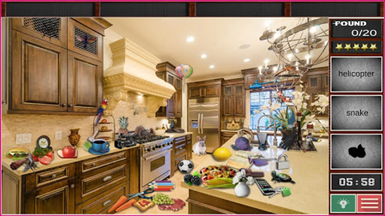 The beautiful game design provides hours of fun while you have to search for a variety of hidden things like treasures, candy, fruits and vegetables, toys, pearls, coffee cups, cute little animals like dogs and cats, parrot and teddy bear etc. Search and find secret hidden objects in a picture of mansion and explore the mysterious worlds beyond your imagination with stunning mystery levels and challenging puzzles. Enter a new fantasy hidden object world and enjoy one of the best mystery games on the play store.
