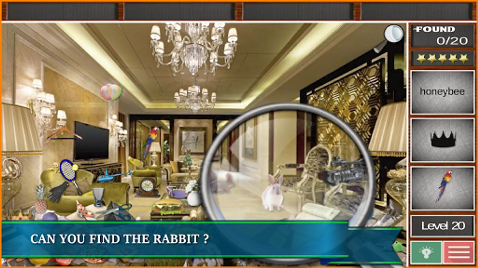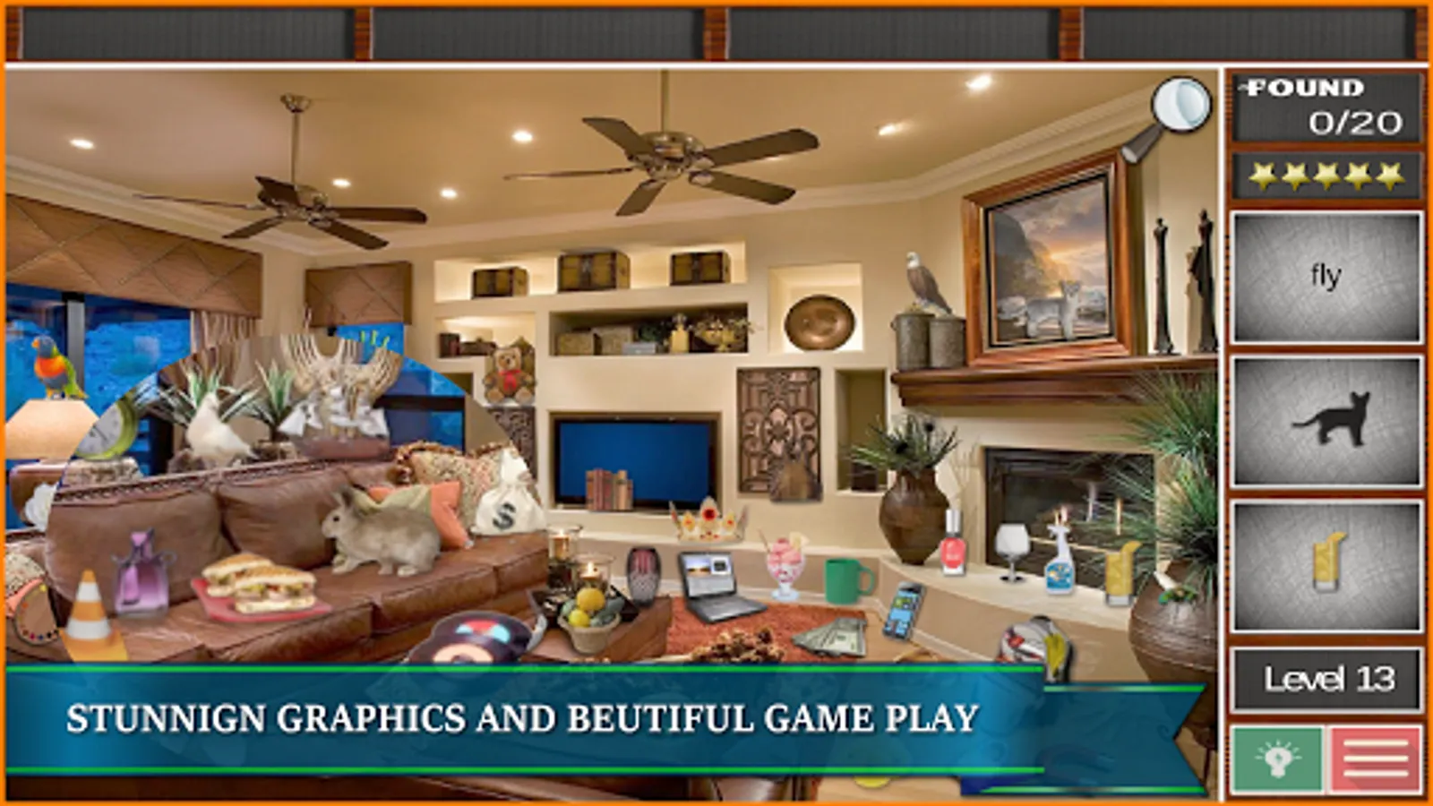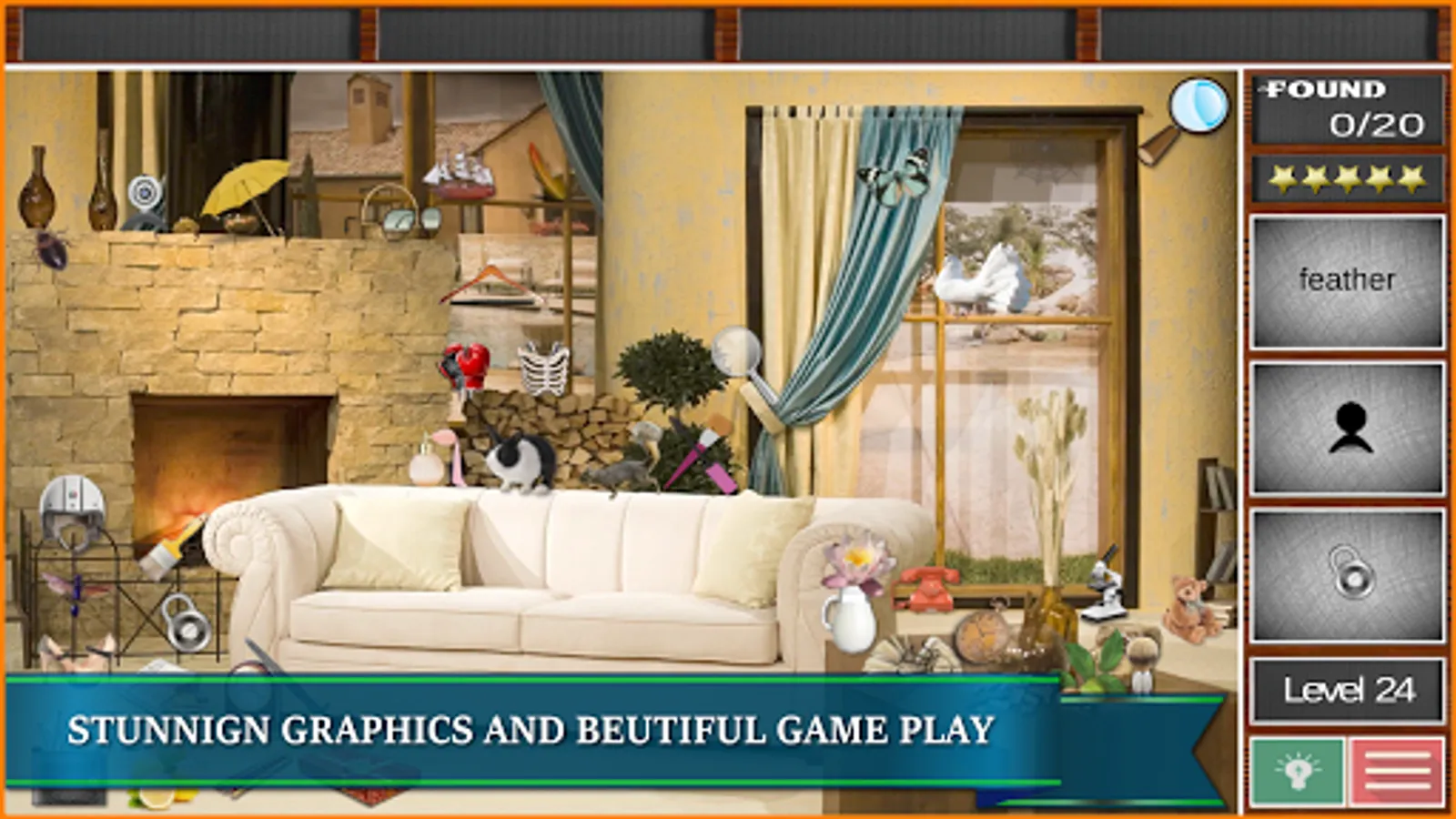 The beautiful game design provides hours of fun while you have to search for a variety of hidden things. Find now the hidden treasures, candy, fruits and vegetables, big toys, bear, coffee cups, cute little animals like dogs and cats, parrot and teddy bear etc. Search and find "secret hidden objects" in a picture of mansion and five a complete home makeover to a messy house.