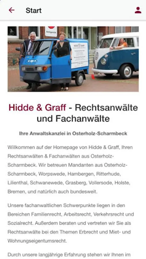 Welcome to the official app of the law firm Hidde and Graff in Osterholz-Scharmbeck. Here you will find all information about our law firm and our services. Contact us quickly and easily via the app. You are mobile - we are there for you too! Download now!