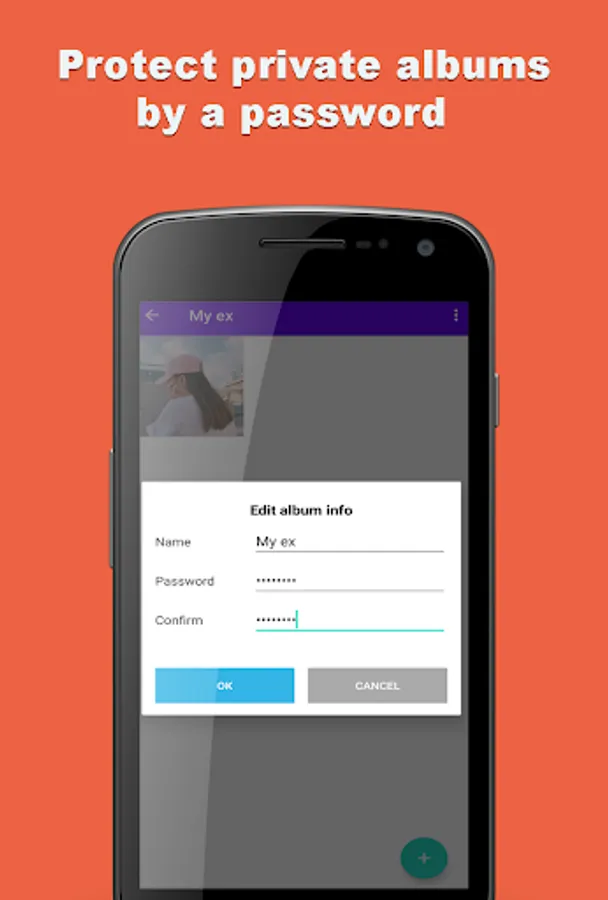 ✔ Create new album, set a password(optional) for it and hit “ok" button.