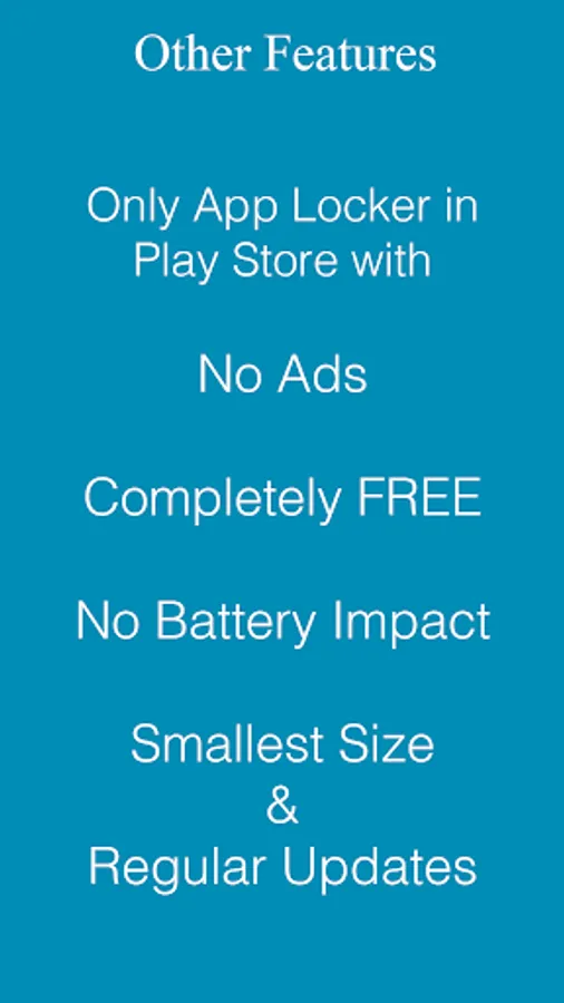 • Support for : Pin Lock, Pattern Lock, Password Lock and intuitive Crash Screen Lock