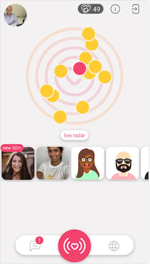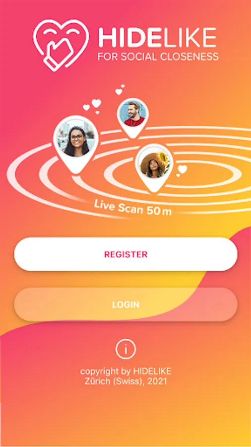 Get to know people you meet in everyday life with Hidelike: On Hidelike you see people 50 meters around you. Do you like someone? Just give a Hidelike (hidden like). Your given hidelikes are your secret and nobody can see it ...unless someone gives you a hidelike too: Then go for a chat -or better- meet offline. Try it!'