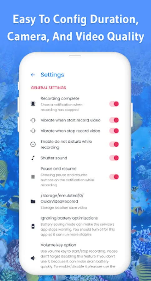 Easy use app by one click Video Recorder shortcut (Quick Record) or one click Widget.