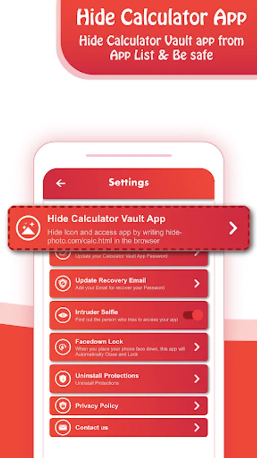 - Hide Calculator Vault app: Hide this calculator vault app from app list without anyone knowing about this app
