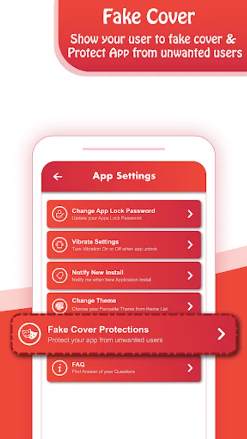 - Fake Cover App Lock that can be lock your apps and its cover with force close screen which simulates that opened app is closed by error. only you know the trick to get real app lock and open your apps. You have multiple options for this setup