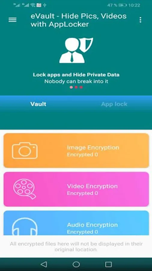 with the eVault app - Hide Pics, Videos with AppLocker Locked Photos and Videos in the app are stored on your device and cannot be accessed by anyone but you. Your data is kept 100% private