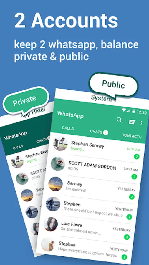 App Hider also allow you to keep the system app and the app copy, so you can log in to 2 accounts at the same time on your phone.