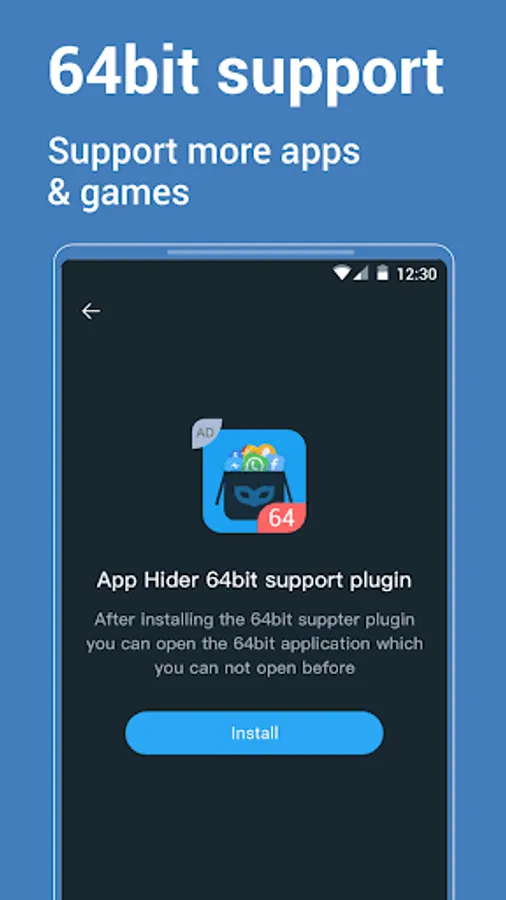 App Hider allow you to hide applications in hidden space wiht calculator password protection.