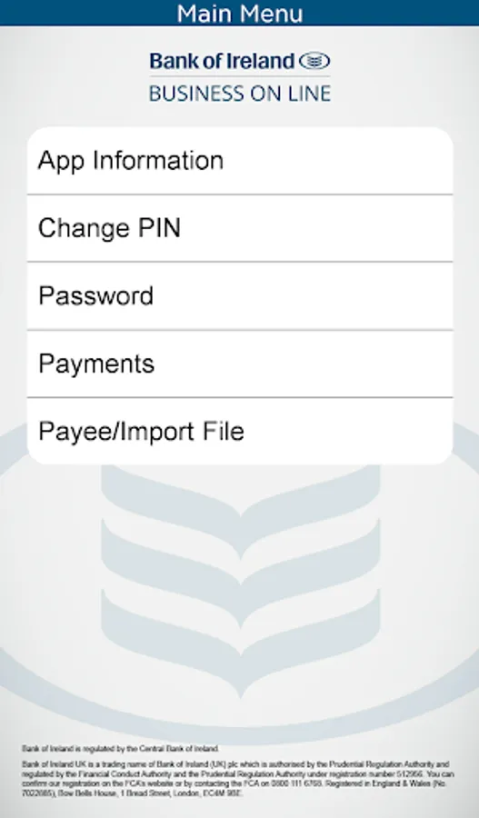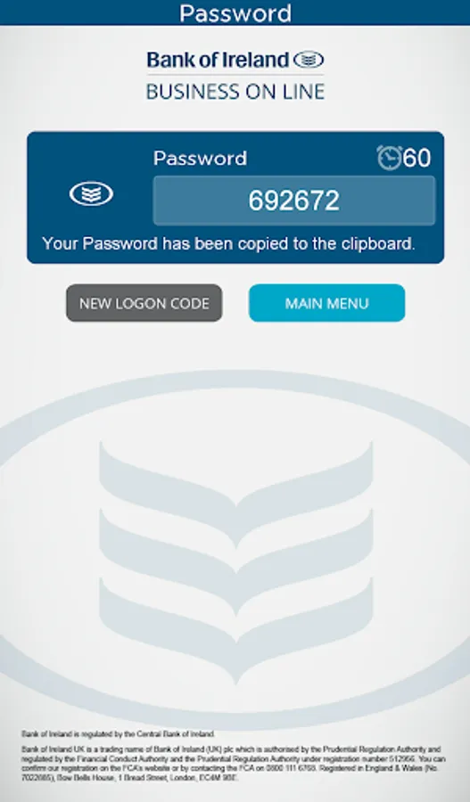 Bank of Ireland UK is a trading name of Bank of Ireland (UK) plc which is authorised by the Prudential Regulation Authority and regulated by the Financial Conduct Authority and the Prudential Regulation Authority under registration number 512956. You can confirm our registration on the FCA's website (www.fca.org.uk) or by contacting the FCA on 0800 111 6768. Registered in England & Wales (No. 7022885), Bow Bells House, 1 Bread Street, London, EC4M 9BE.