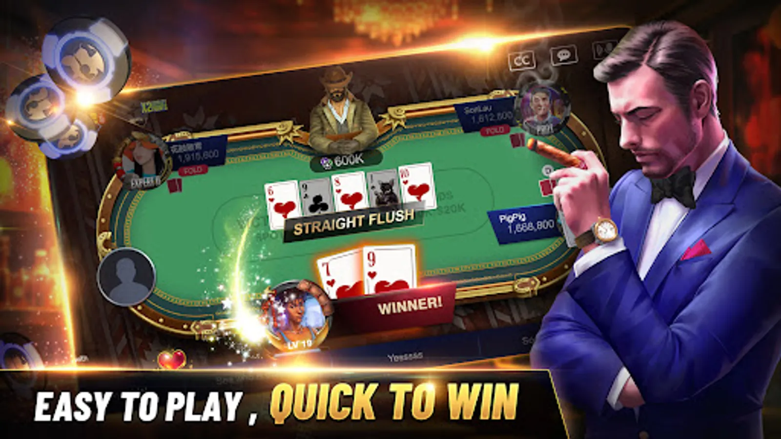 Want to show off your unique personality? Upload a photo to create your own custom avatar, and choose from different themed avatar frames, table skins, and card skins to show off your unique “Poker Bang” style. Let Poker become an art!