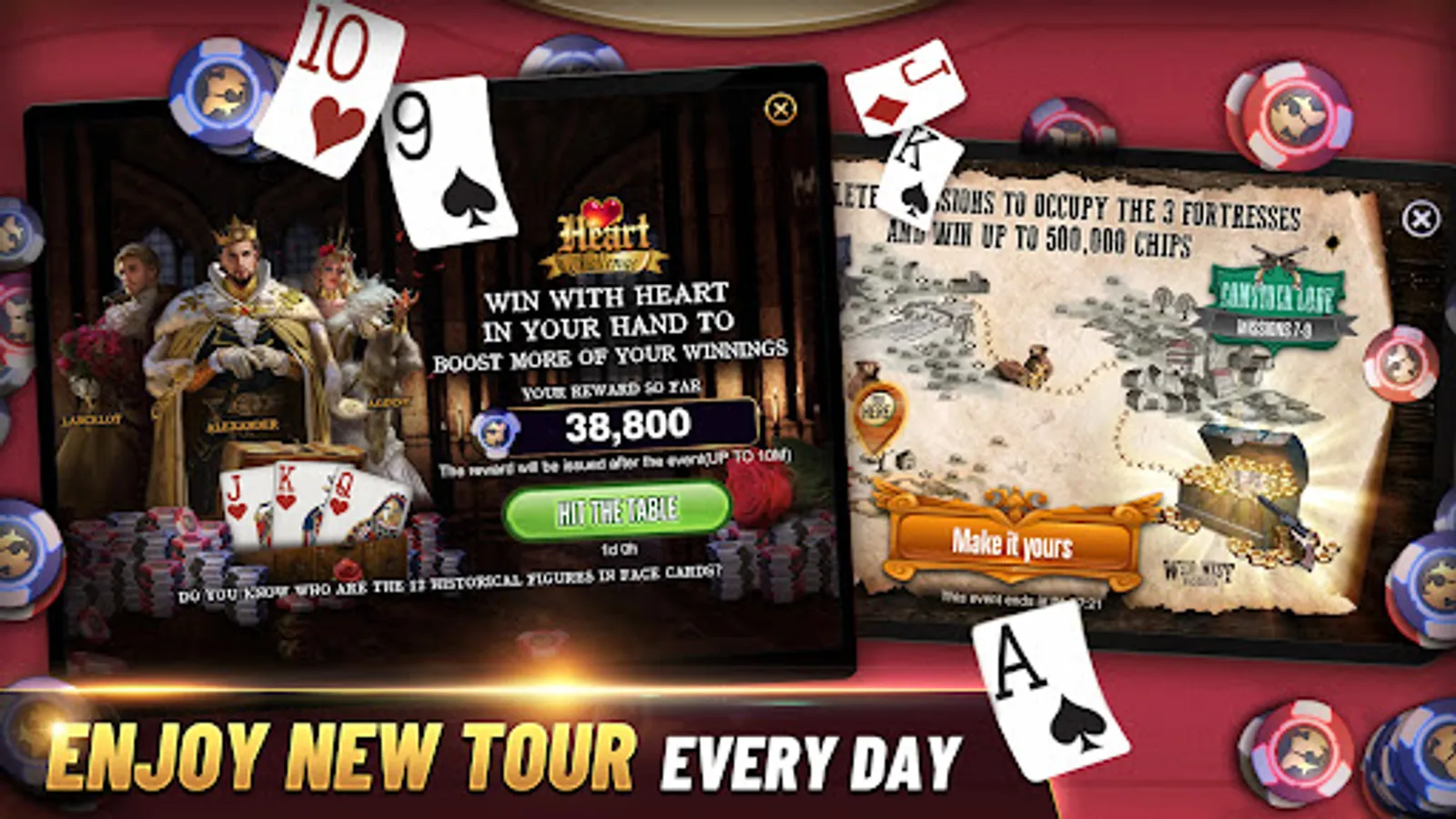 Log in daily to receive free chips, and add a unique twist to your game with unique game modes, exciting bounty missions and great rewards!
