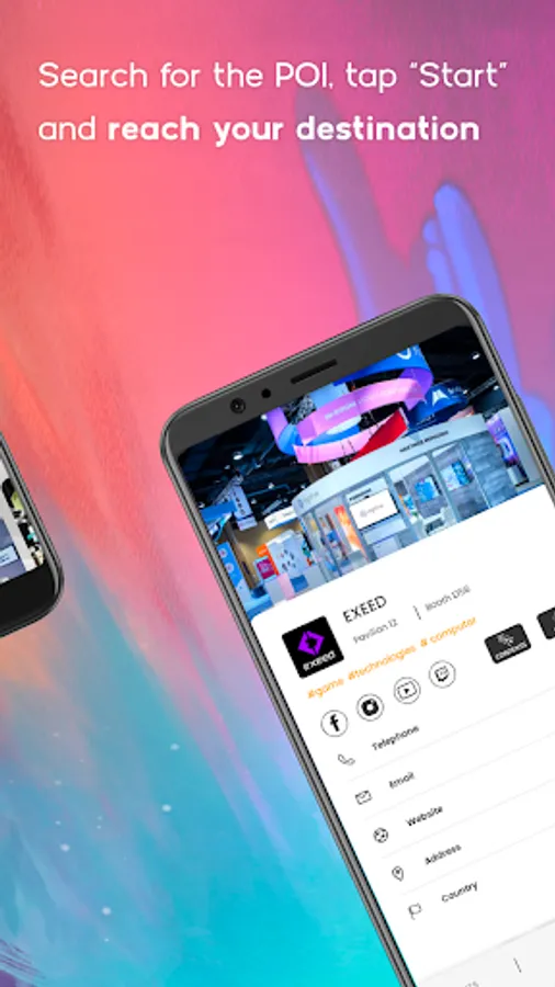 - explore the interactive map to locate the exhibitors, the event locations, the services and the points of interest