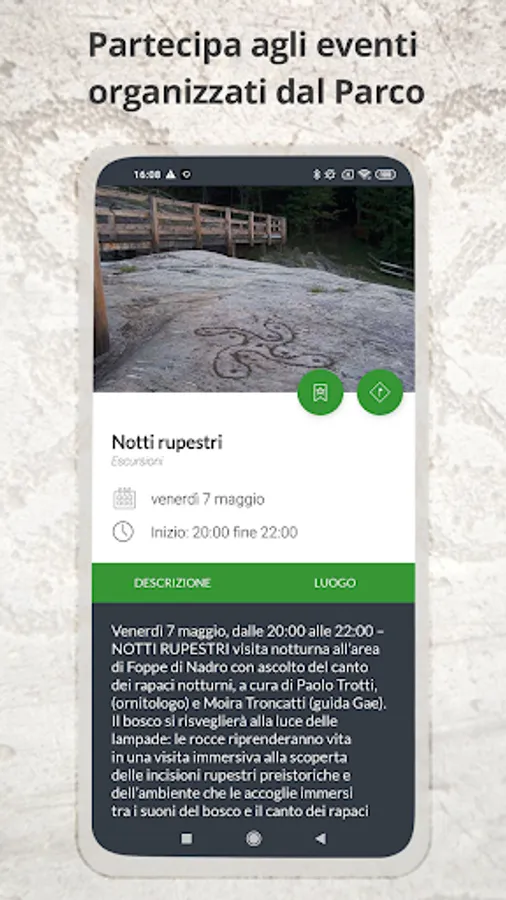 "Rock engravings" is the official app of the Natural Reserve of rock engravings of Ceto, Cimbergo and Raspardo.