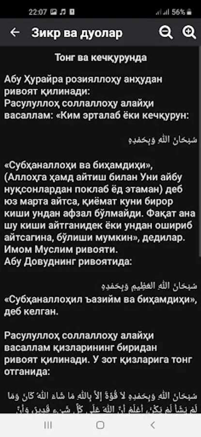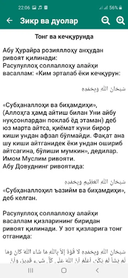 Ushbu kitobga Sarvari koinot Mukhammad alaikhissalomdan, u zotning ashoblaridan rivoyat qilingan sakhih duolar zhamlangan.
