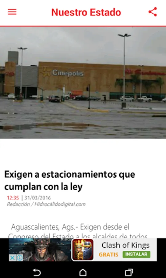 The daily leader of Aguascalientes, Mexico in its version for Android devices.