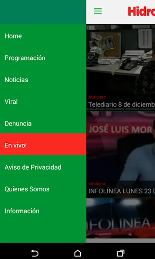 Hidrocálido TV features news flashes generated by newspapers, news hidrocálido and Water and the live broadcast of Universal Radio programs, as Infoline, transmitted by XHPLA, La Mexicana, and X-ray transmitted by XHCAA, Stereorey.