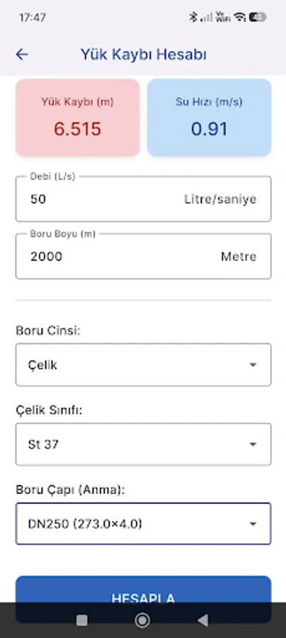 The application provides basic hydraulic calculations for drinking water and pump systems with a simple and user-friendly interface.