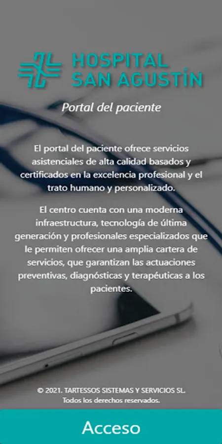 With this application you can access the patient portal of Hospital San Agustín de Sevilla to request appointments and access your radiology reports.