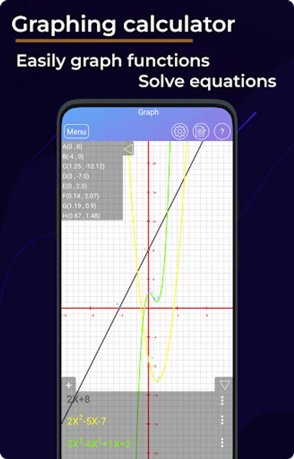 📊 Professional Graphing Tool: HiEdu Pro allows you to create professional and visually appealing graphs. You can graph functions, relationships between variables, and present data in an intuitive and clear manner.