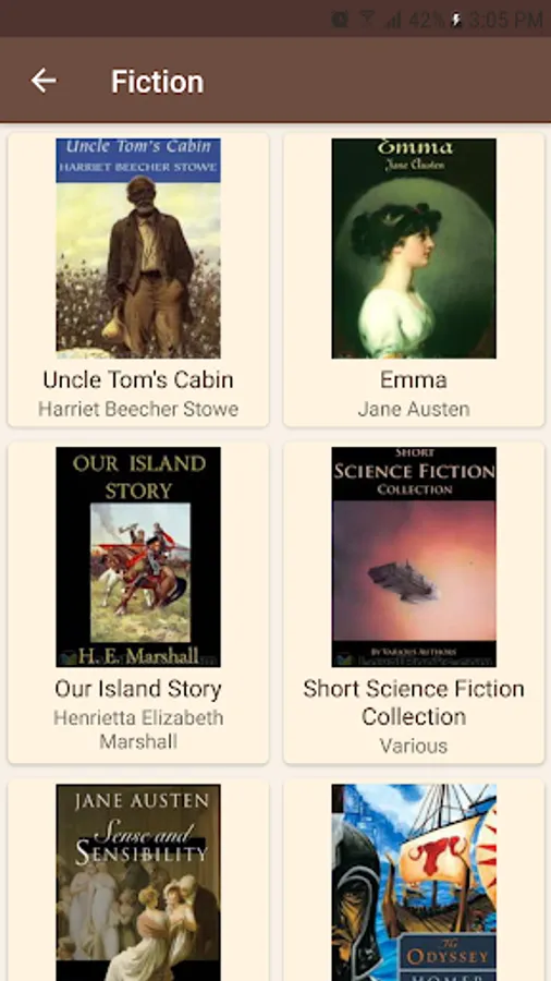 Fiction, Fantasy, Adventure, Romance, Comedy, Mystery, Fairy tales, Children, Biography, Historical Fiction, Poetry, Science fiction, Horror/Ghost stories, Sea stories, Short Stories, Religion, Philosophy and many more!
