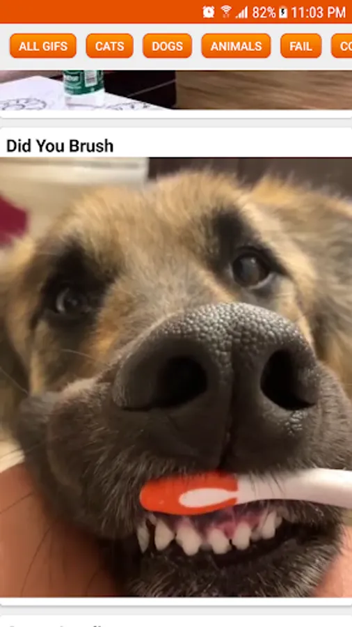 For Funny Gifs list, we have: All gifs, Cats gifs, dogs gifs, animals gifs, fail gifs, cool gifs, weird gifs, pranks gifs...