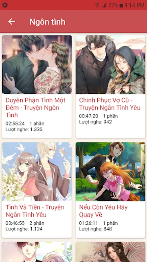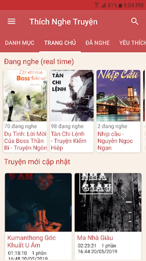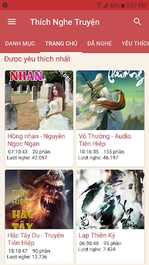 Stories are displayed according to the list of stories currently listening, newly updated stories, most popular stories ... very intuitive.