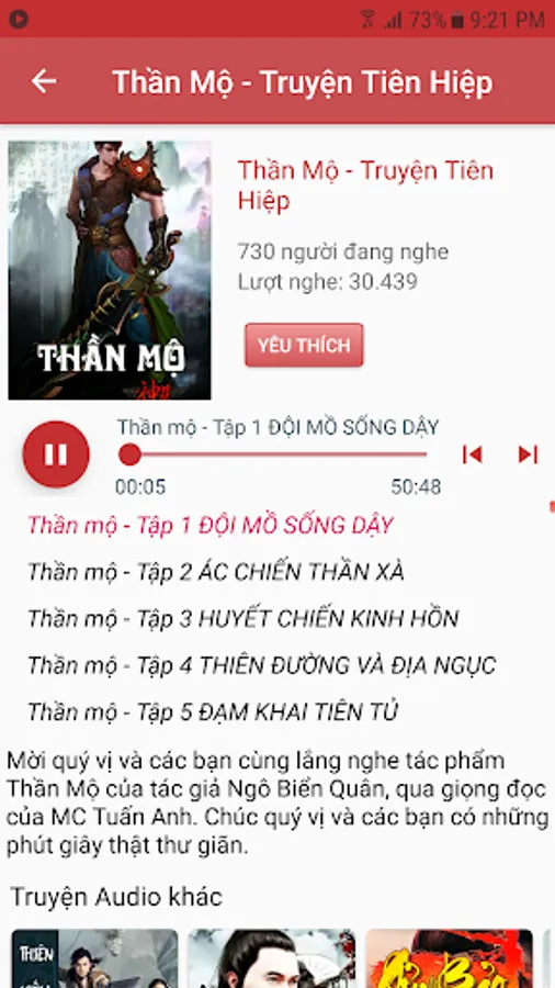 All audio stories in the application are read by very good and inspiring voices such as writer Nguyen Ngoc Ngan, MC Dinh Soan, MC Tran Van, MC Hong Nhung, MC Anh Tu...
