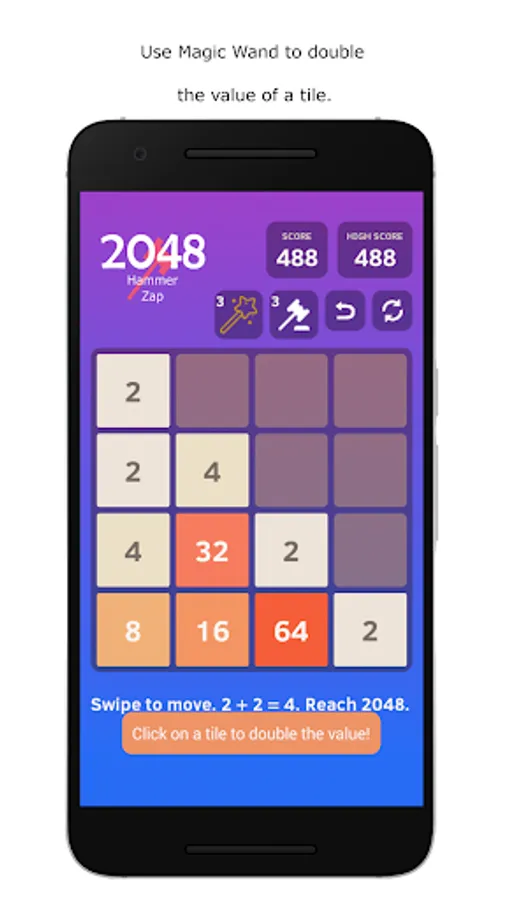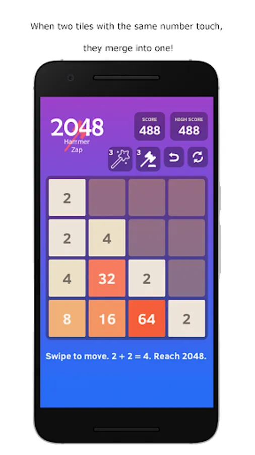 2048: Hammer Zap puzzle is a fun, addictive and a very simple number puzzle game.