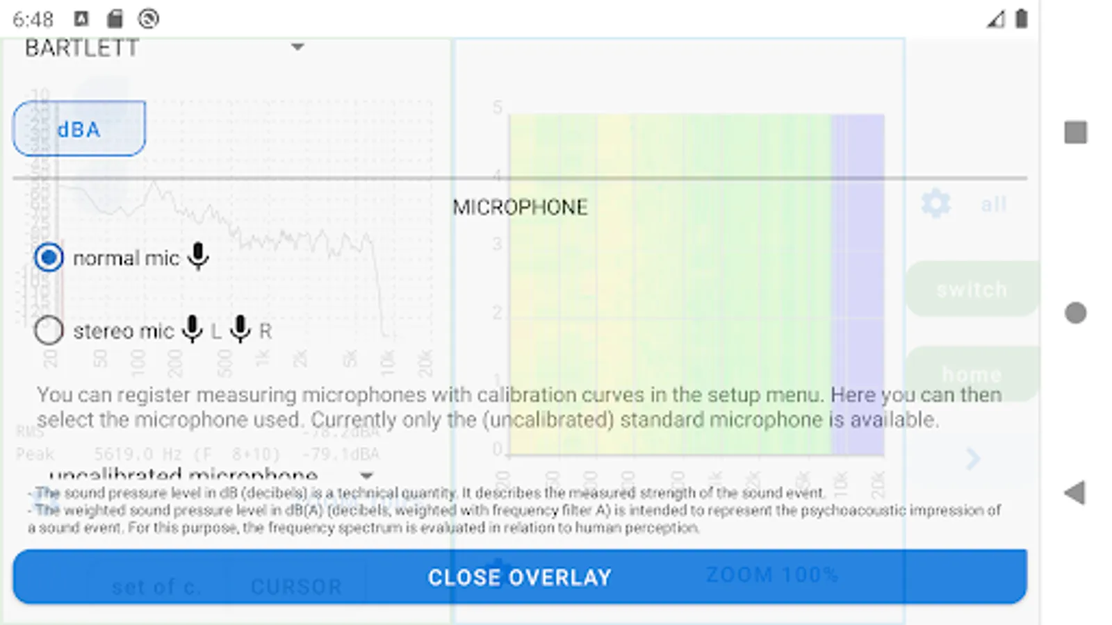 - Calibration possibilities for the built-in microphone by comparison measurements, if a measurement microphone is available.