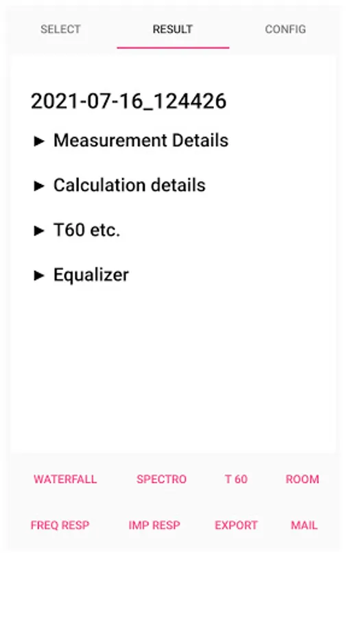 - Export of measurement data: Impulse response accessible as .wav file and measured values in CSV and .FRD format.