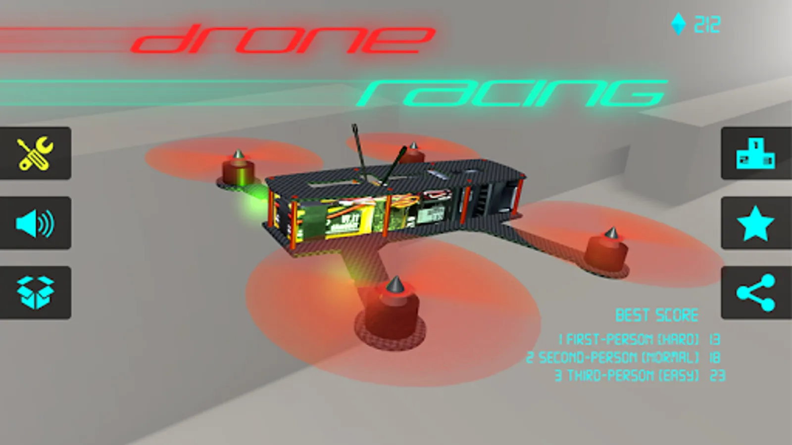 Drone racing will be a sport of the future! They are very very fast, to bring you an unbelievable visual experience, it's really immersive, it's engaging and fast. This is an elaborate game, fun beyond imagination. This game have noob mode and pro mode, so that everybody can get started, let you have a smooth experience.