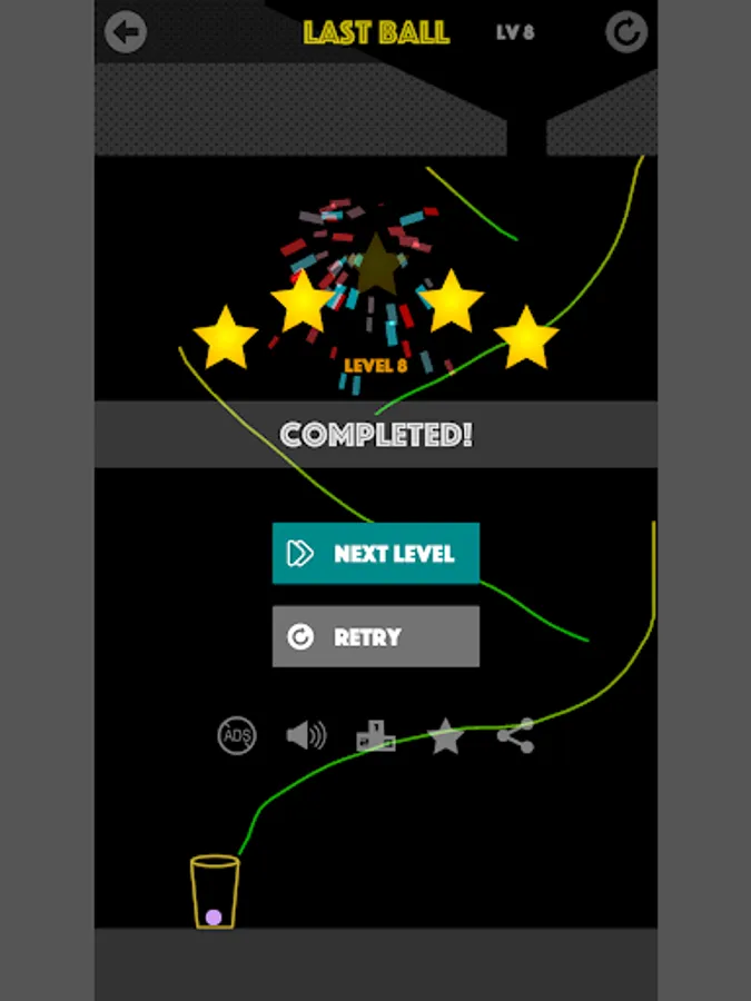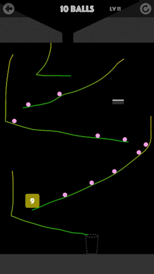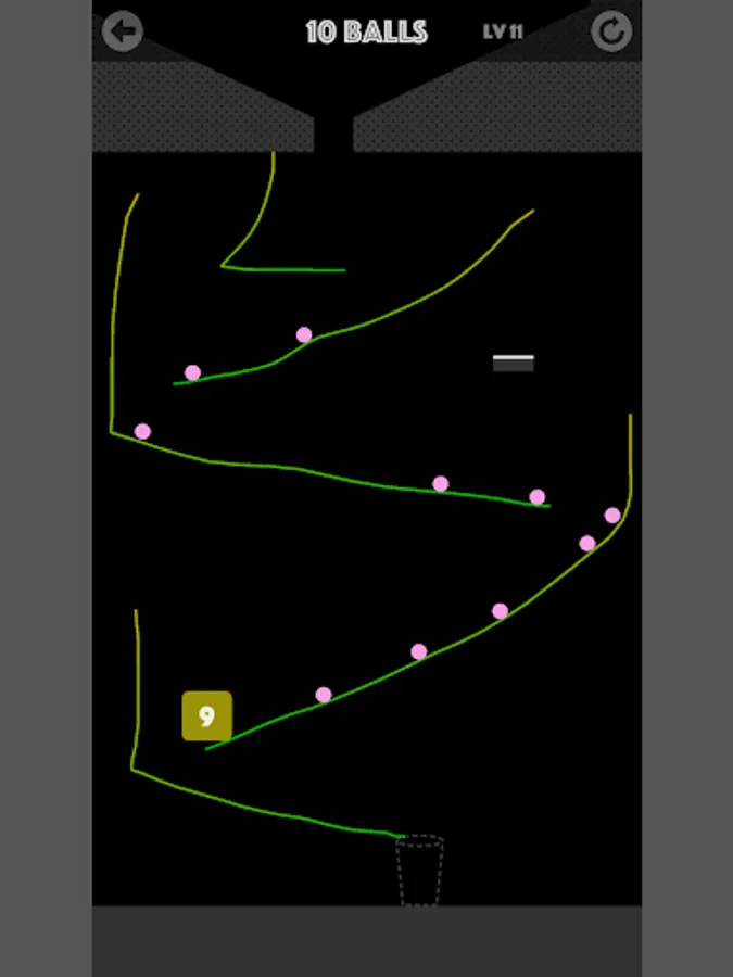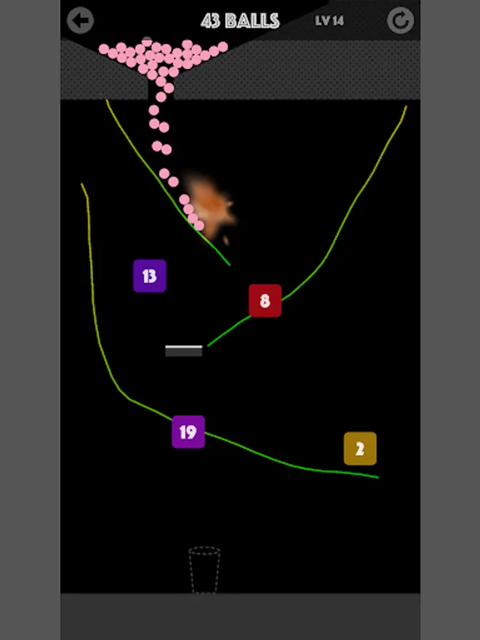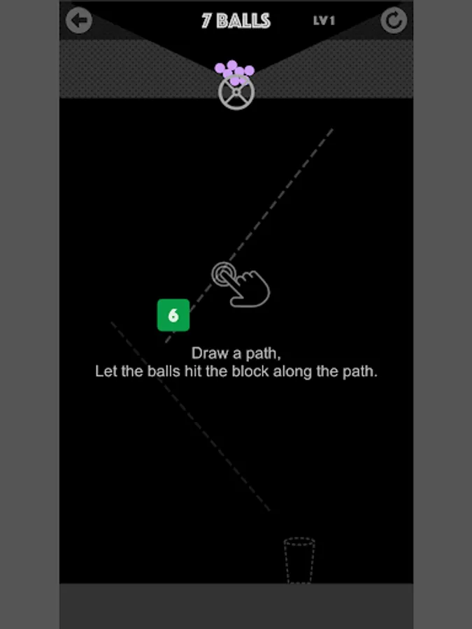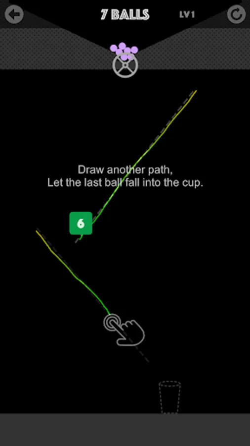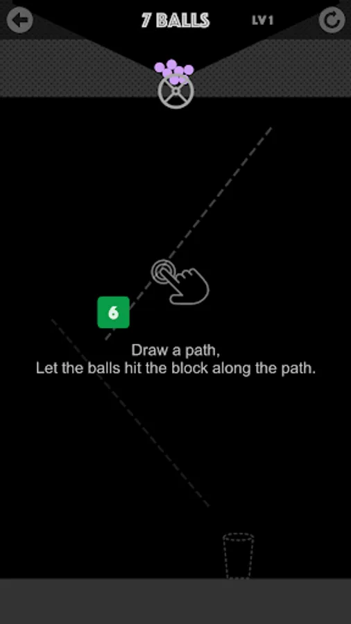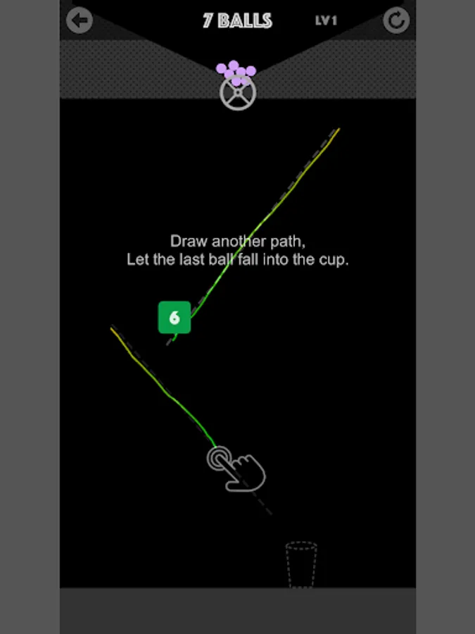 Freely draw path, destroy all blocks, And let the last ball fall into the cup.